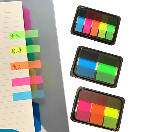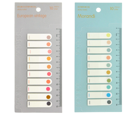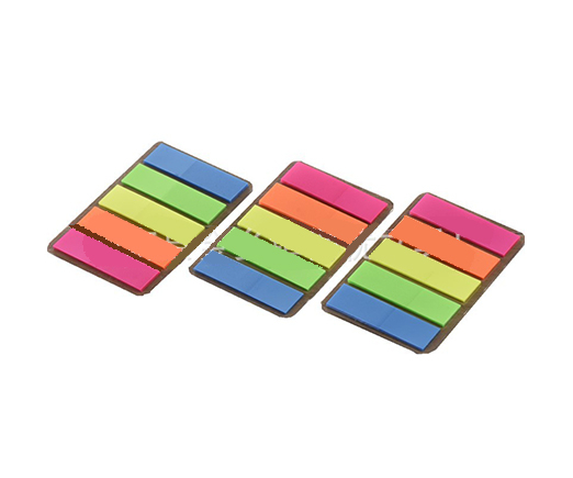 Закладки самокл. DM-115/DY-1 пласт. "Закругленные" 44*11мм 10 видов*20листов в блоке с линейкой, ассорти (12/1200)