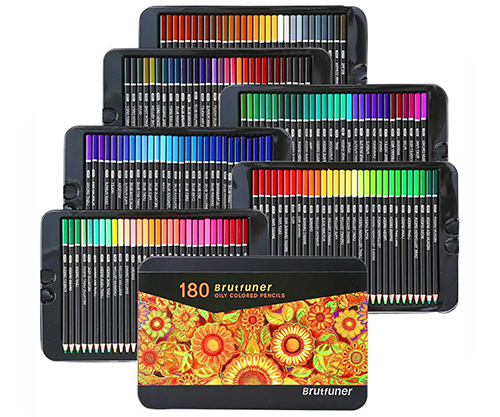 Карандаши 180 цв. Brutfuner WBF-1 масляные деревянные, заточенные, в черной металлической коробке 638-180 (1/4/8)