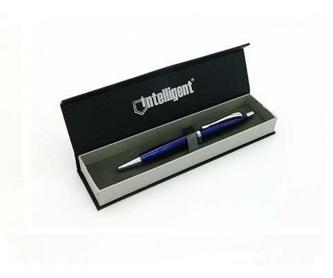 Ручка в футляре BV-158 INTELLIGENT (син) 0,7мм Серый металлик с золот, поворотный механизм, в к/кор (1/100/200)