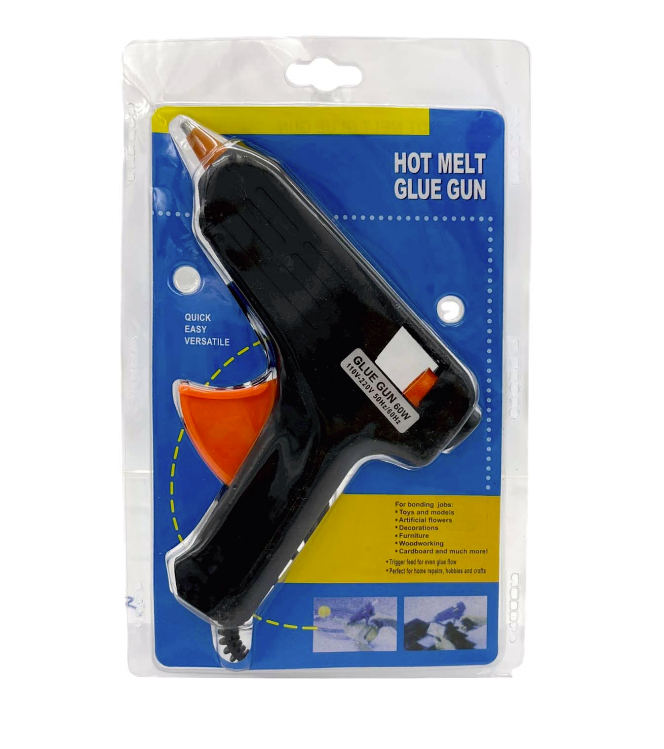 Клеевой пистолет DM-166 60Вт, диаметр стержня 11 мм, +1 стик в комплекте, в блистере, черно-оранжевый (1/50)