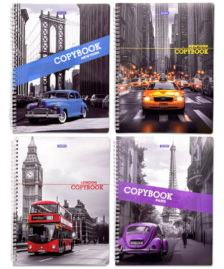 Тетрадь 80 л. А4 JOOYDOO QD-15274-А4 спираль "Города" клетка, глянцевая мелованная обложка, ассорти (8/64)