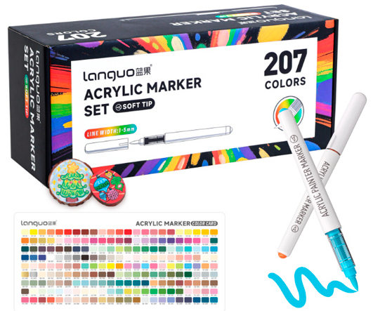 Маркер акриловый 168 цв. DM-236/DO-213 1-5мм, кисть, круглый черный корпус, в к/к AW-1956 (1/4/8)