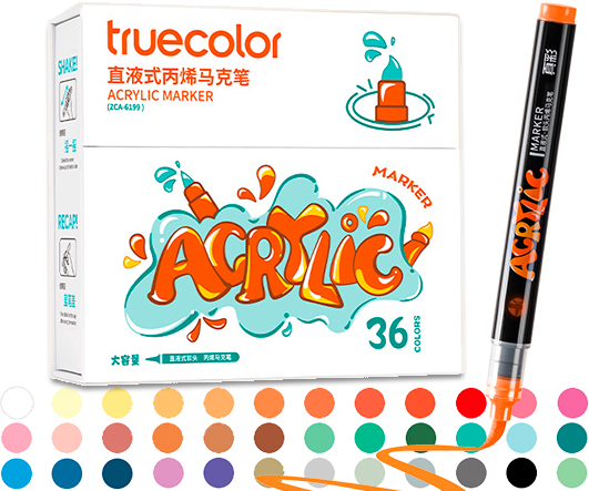 Маркер акриловый 36 цв. DO-284 1-4мм, кисть, круглый черный корпус с индикатором, в к/к ZCA-6199 (1/32)