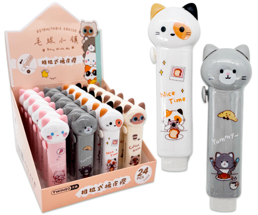 Ластик DO-301 "Котик" выдвижной, цветной фигурный корпус, 10 см, ассорти, в к/кTG125 (24/576)