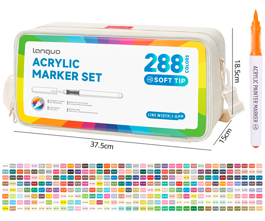 Маркер акриловый 288 цв. DO-611 1-5мм, кисть, круглый белый корпус, в текстильной сумке M720-37 (1/3)