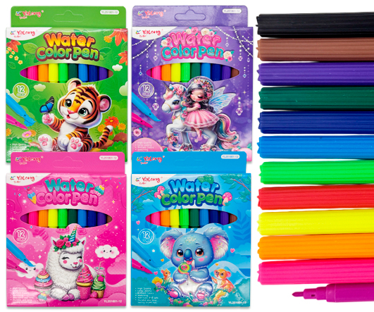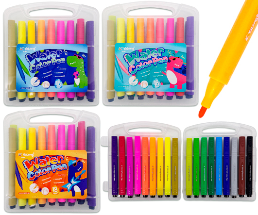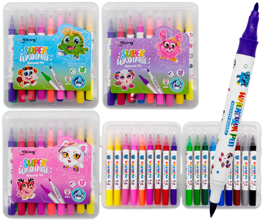 Фломастеры 18 цв. Yalong YL221805-18 Трехгранный корпус, 1-2мм, пулевидный, в пластиковом пенале (1/18/72)