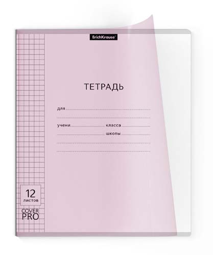 Тетрадь 12л. (клетка) Er.Krause "Классика CoverPrо Pastel" с пластиковой обложкой, розовая 56342 (10/280)