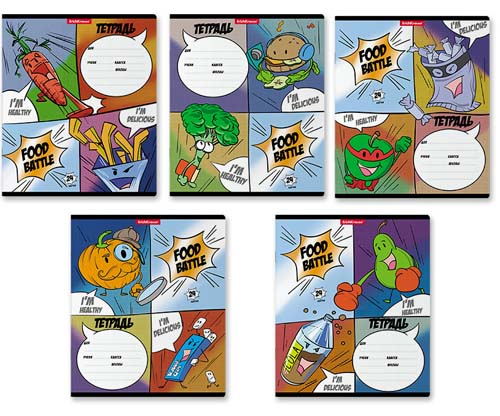 Тетрадь 24 л. (клетка) Er.Krause "Food Battle" ассорти 58265 (10/160)